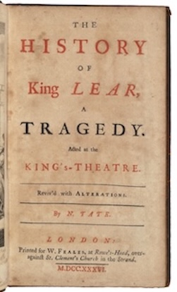 Image Credit: Title page of The History of King Lear, a Tragedy, published in 1736 in connection with a revival of Nahum Tate's 1681 Shakespearean adaptation. Folger Shakespeare Library, CC-0 public domain license.